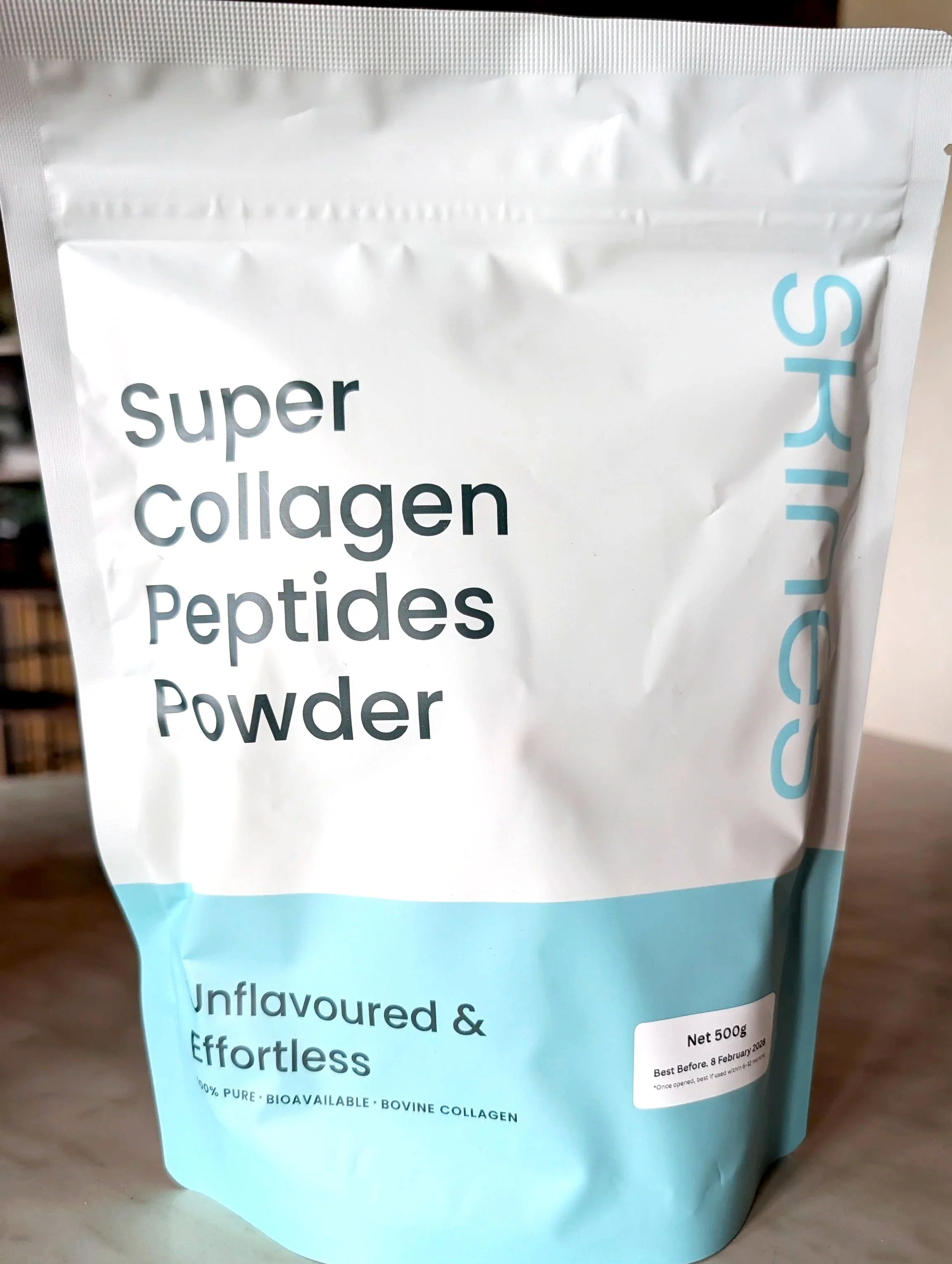 “SKINES Super Collagen Peptides Powder is a premium, single-ingredient formula made from Australian grass-fed, pasture-raised bovine collagen. Highly bioavailable and easily absorbed, it blends seamlessly into your favourite Tavalon tea, matcha, coffee or smoothies, without altering taste or texture.”